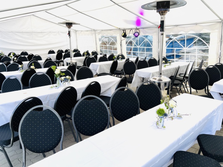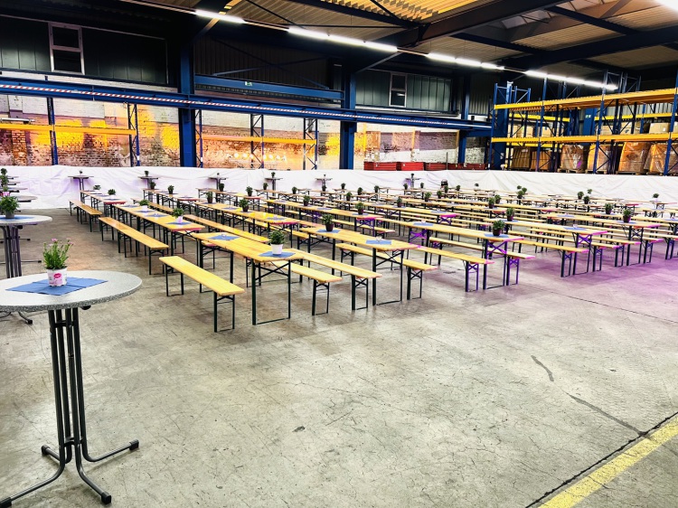 Bestuhlung (Bierzelttische und Bänke mit Hussen)