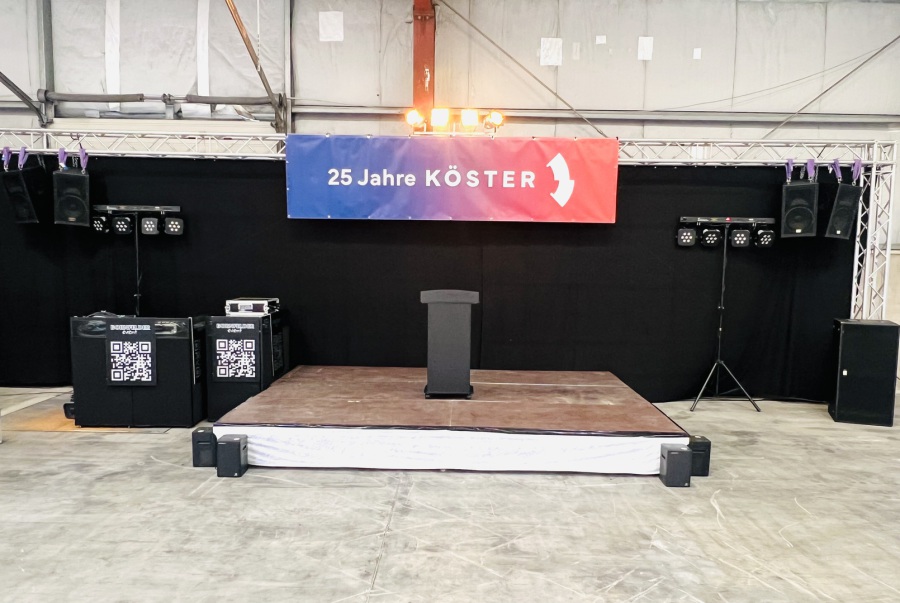 Traversensystem mit Abhängung für ein sauberes Bild der integrierten Bühne mit Rednerpult